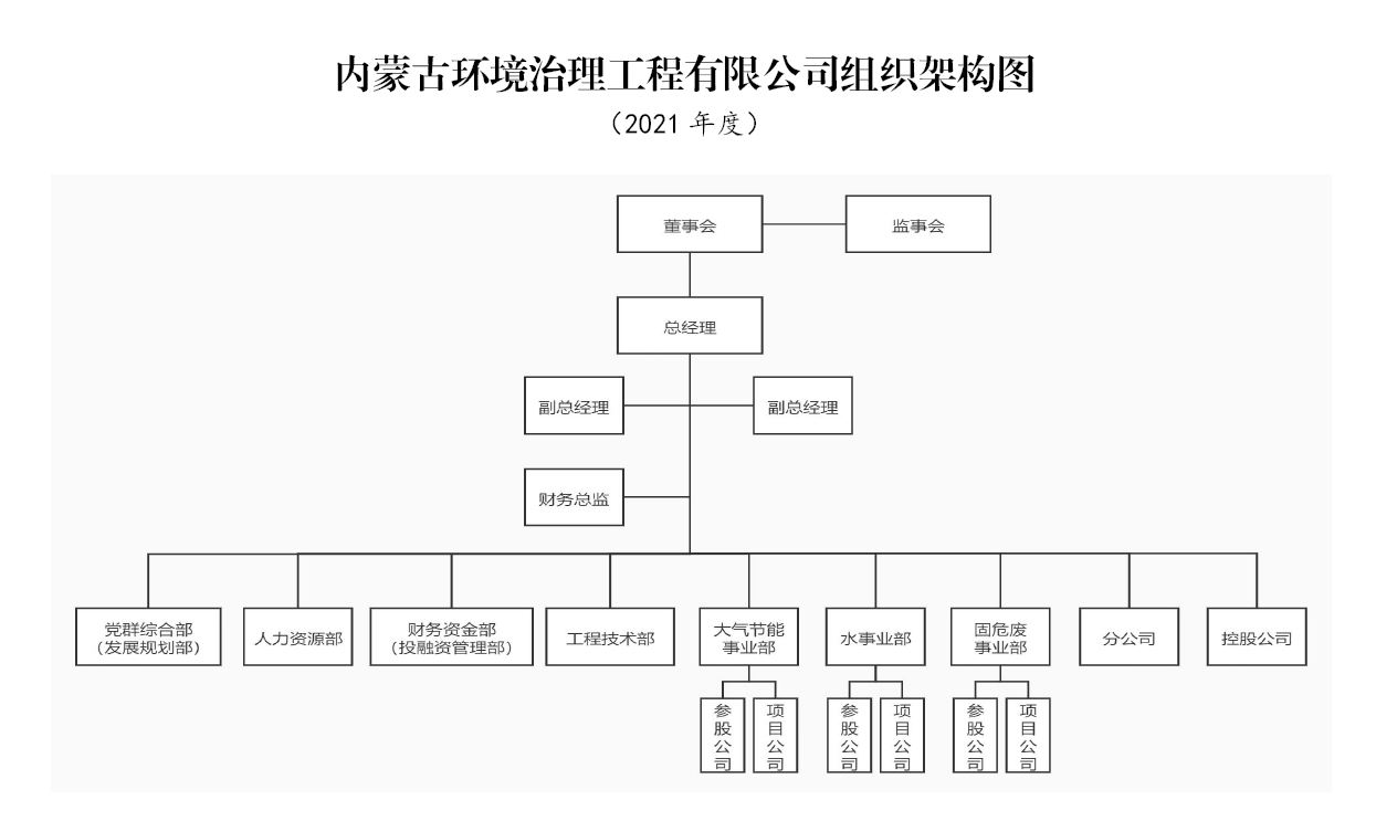 环境治理工程公司成立于2018年1月,注册资本金1亿元,是内蒙古环保投资集团有限公司(简称“荣耀体育在线登陆入口_荣耀体育(中国)”)旗下的全资子公司。截止2020年12月,拥有资产总额23278万元;公司设有4个职能部门、3个事业部和11家控参股公司;各类专业技术人员56人。